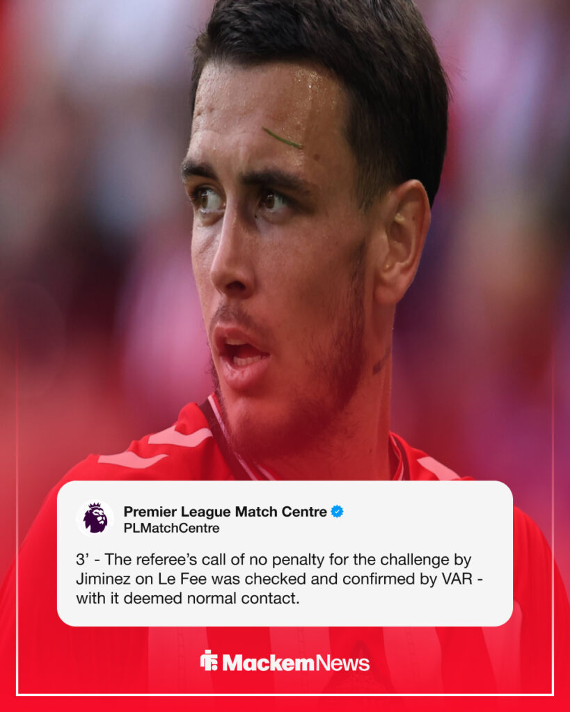 The Mexican was clumsy in pushing over Le Fee, but VAR have described it as “normal contact”.